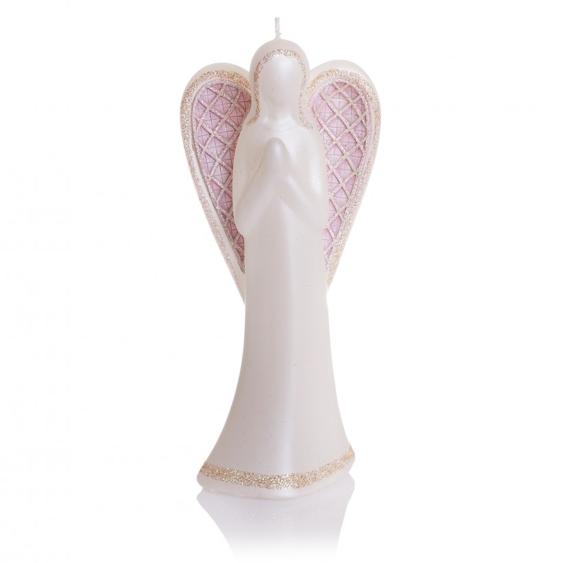 BARTEK CANDLES Marocco svíčka figurka Anděl se třpytkami 165 mm - s růžovými křídly