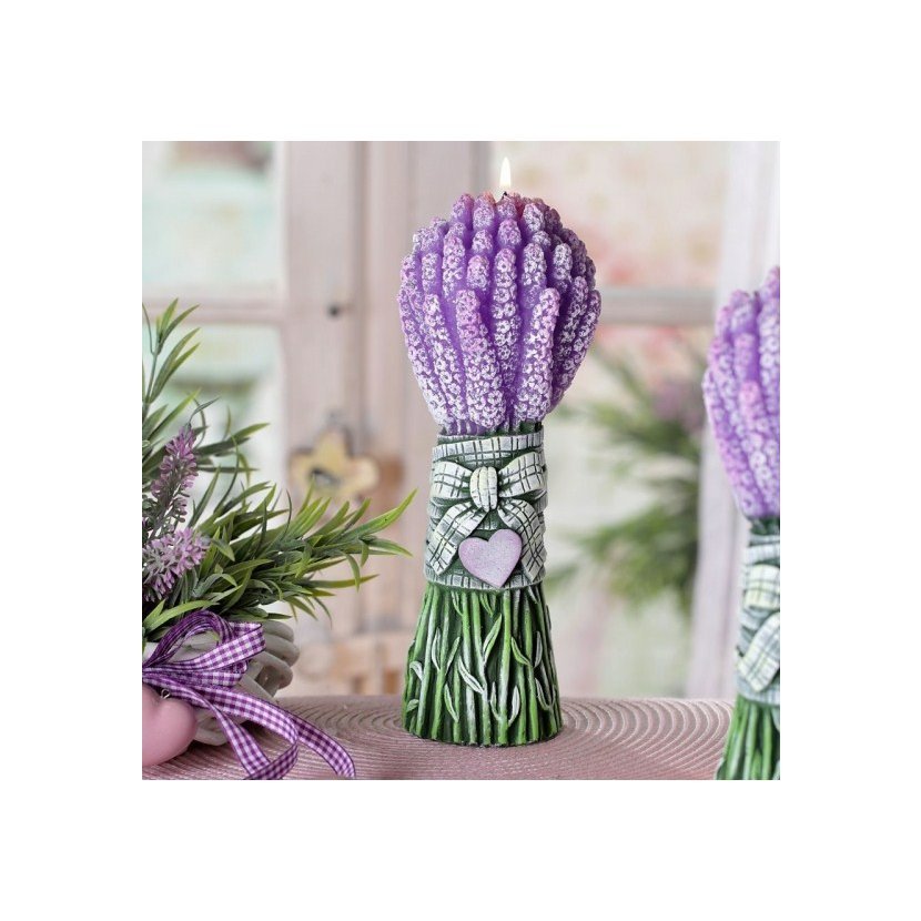 Dekorační svíčka ve tvaru levandulové kytice ozdobí každou domácnost milovníků levandule či svíček. Má jemnou levandulovou vůni.