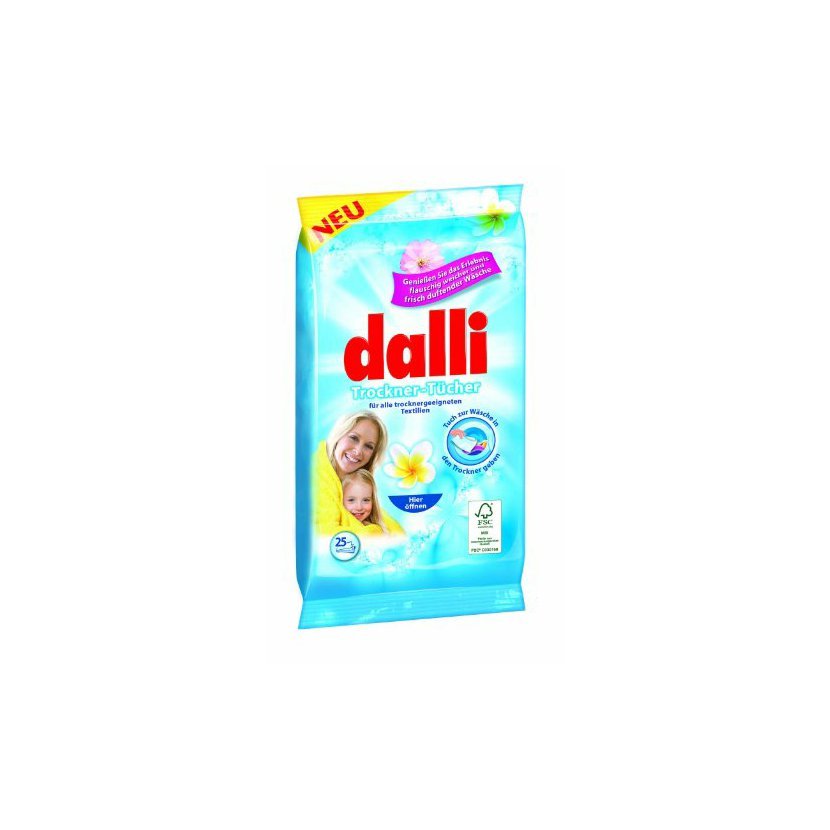 Vlhčené ubrousky Dalli jsou vhodné pro všechny druhy oblečení určeného do sušičky. Dodává prádlu měkkost, usnadňuje žehlení a navíc ho provoní příjemnou květinovou vůní.