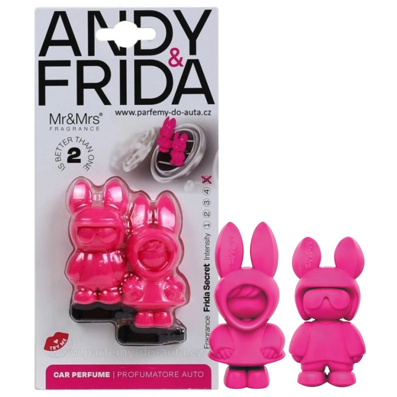 Andy a Frida jsou zamilovaný pár, a taky pár vůní do auta v roztomilém designu. Skvělý dárek pro sebe a partnera, kamarádku či kohokoliv, s kým se chcete podělit. Snadno je umístíte do ventilátoru v interiéru auta.