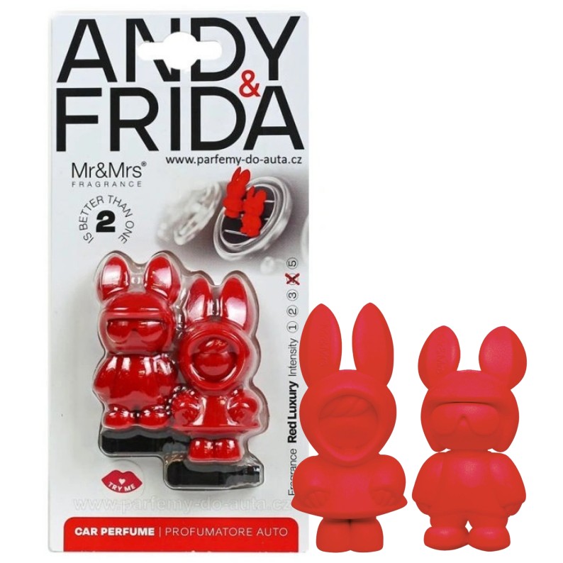 Andy a Frida jsou zamilovaný pár, a taky pár vůní do auta v roztomilém designu. Skvělý dárek pro sebe a partnera, kamarádku či kohokoliv, s kým se chcete podělit. Snadno je umístíte do ventilátoru v interiéru auta.