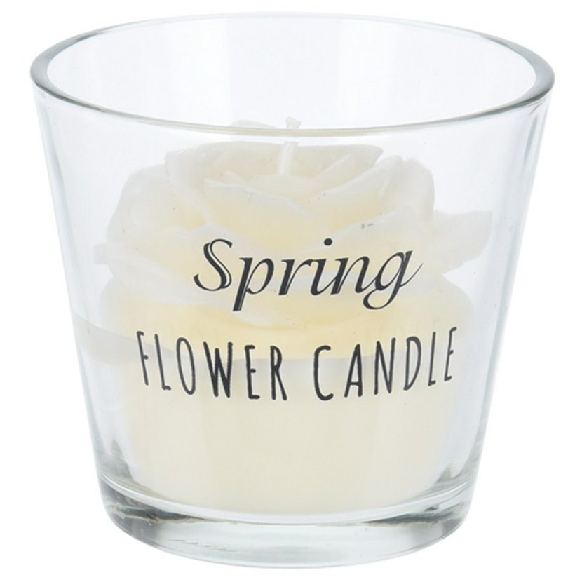 SPRING FLOWER Svíčka ve skle růže - bílá